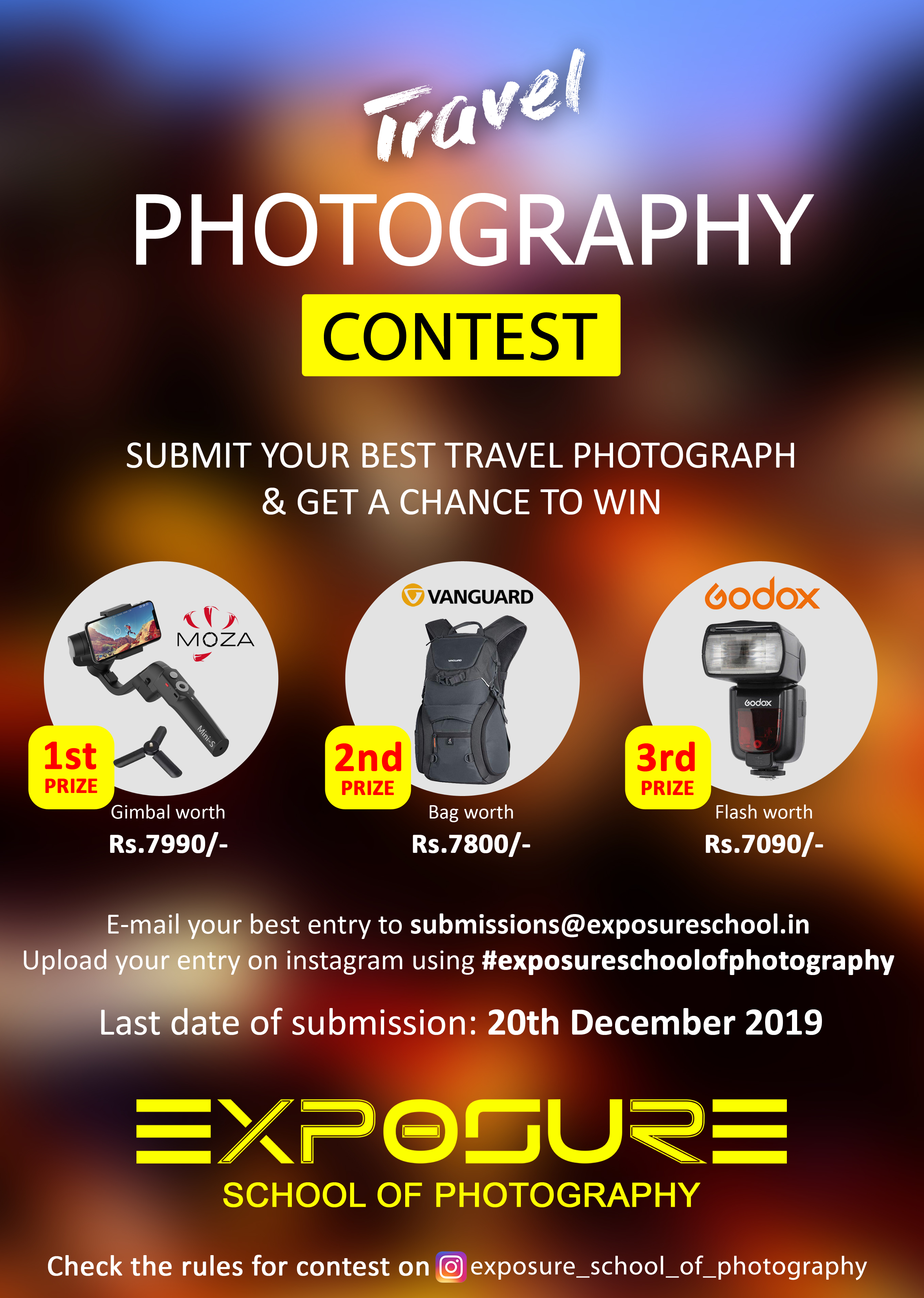 - • Results will be declared on the official Instagram Handle of Exposure School of Photography and details will be communicated to the winners via email in the first week of January 2020. Exposure School of Photography reserves all the rights to refuse admission of entry in case of violation of contest guidelines.